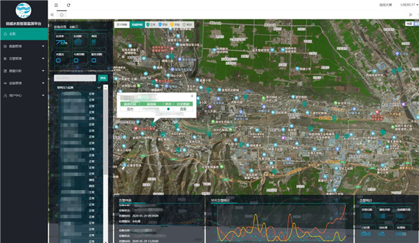 整個管網監測由多個井下監測單元組成,創威水務項目中,井下目前已安裝40余套監測設備,覆蓋管網百余公里,涉及金臺、渭濱、高新三個區,項目仍在持續進行中。